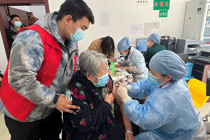 新林區(qū)各鎮(zhèn)對轄區(qū)內人口信息摸排統(tǒng)計,結合“敲門行動”準確掌握信息,切實做到底數(shù)清、情況明。區(qū)委宣傳部通過微信公眾號、廣播、情景劇等多種形式開展疫苗接種宣傳,營造濃厚氛圍。區(qū)人民醫(yī)院設立老年人疫苗接種專用通道,并選派業(yè)務精、熟悉常見老年病診療的醫(yī)務人員擔任接種和醫(yī)務保障工作,對一些疑難雜病,主動對接區(qū)疾控中心,組織專家分析接種的可能性。同時開展“接種進基層”工作,調派急救車輛做好現(xiàn)場保障,下沉各鎮(zhèn)社區(qū)為行動不便老年人提供接種與咨詢服務。醫(yī)務人員組織前來接種疫苗的老年人填寫好接種知情同意書,現(xiàn)場告知接種禁忌癥并進行常規(guī)檢查。