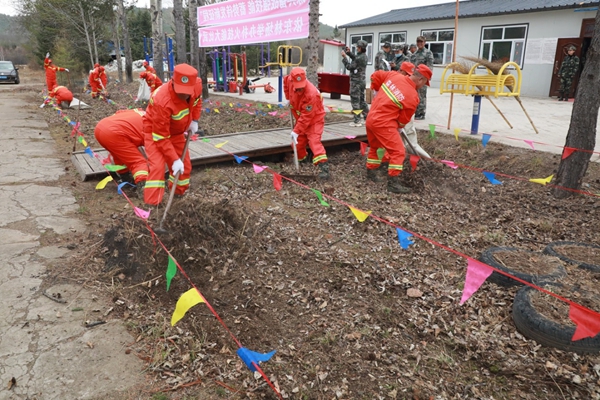 開設(shè)防火隔離帶,是阻擋火源的有效方法。依東林場將環(huán)境衛(wèi)生整治與防火科目結(jié)合起來,在門前擺下擂臺,拉出橫線設(shè)立分區(qū),六組隊員進(jìn)入場地爭分奪秒、互不相讓,有的耙、有的裝,一會功夫一條干凈、規(guī)范的“隔離帶”出現(xiàn)在眼前。