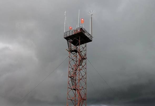 安裝在呼中林業(yè)局施業(yè)區(qū)內瞭望塔頂?shù)膯误w拒雷設備(徐志偉攝)
