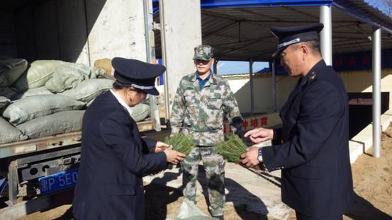 工作人員對(duì)造林苗木進(jìn)行有害生物檢疫和質(zhì)量檢驗(yàn)工作(趙明攝)