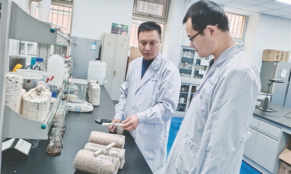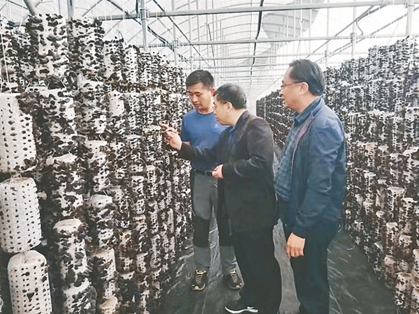 科研人員對(duì)黑木耳規(guī)?;a(chǎn)進(jìn)行技術(shù)指導(dǎo)。