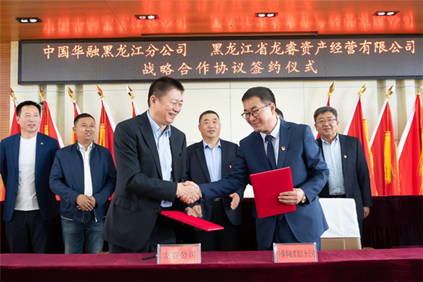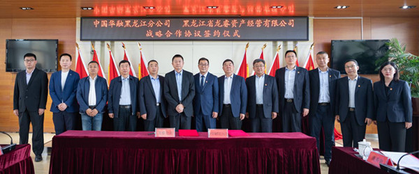 龍睿公司黨委書記、董事長(zhǎng)、總經(jīng)理鄶曉龍,中國(guó)華融黑龍江分公司黨委書記、總經(jīng)理所東斌代表雙方簽訂協(xié)議。龍睿公司副總經(jīng)理、總會(huì)計(jì)師王貴軍,董事會(huì)秘書、總經(jīng)理助理陳良謙,中國(guó)華融黑龍江分公司副總經(jīng)理王新潮、風(fēng)險(xiǎn)總監(jiān)田榮成及雙方相關(guān)部門負(fù)責(zé)人參加了簽約儀式。