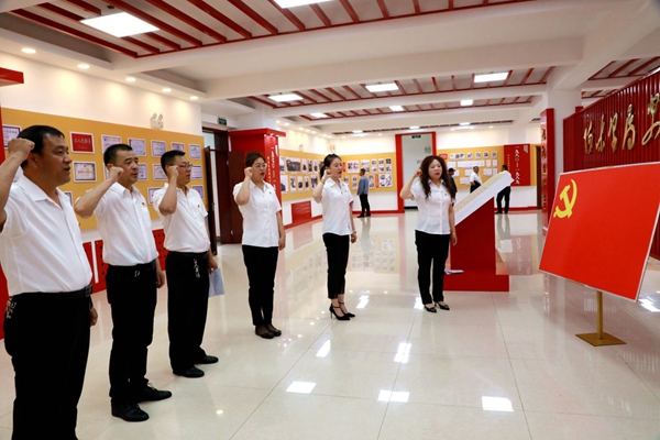 阿木爾林業(yè)局管理服務(wù)中心黨支部組織黨員重溫入黨誓詞(王力 攝)
