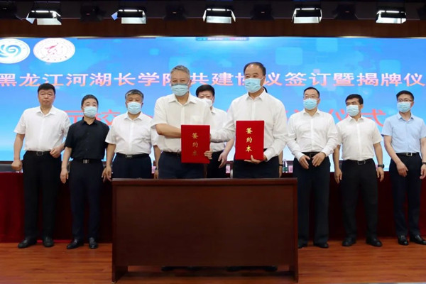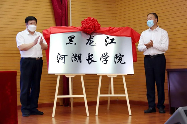 儀式上,省水利廳黨組書記、廳長、省河湖長制辦公室常務(wù)副主任侯百君和黑龍江大學校長付宏剛簽訂了共建協(xié)議,與黑龍江大學黨委書記王永清共同為黑龍江河湖長學院揭牌。
