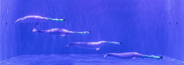 2009年,哈爾濱極地公園首推極地白鯨水下表演,歷時(shí)13年的時(shí)間,“來哈爾濱·看白鯨表演”已經(jīng)成為全國游客心馳神往的旅游節(jié)目,而表演中經(jīng)典的“海洋之心”不僅獲得了原創(chuàng)版權(quán),也成為了哈爾濱一張具有浪漫色彩的文旅名片,獲得國內(nèi)、國際主流媒體持續(xù)十余年的關(guān)注。2021年5月,三只可愛的極地白鯨創(chuàng)造的“三鯨開泰”首次亮相;現(xiàn)在,哈爾濱極地公園的白鯨家族推出“四鯨巡游”、“四鯨祈?!钡雀唠y度表演,再一次創(chuàng)造了經(jīng)典。