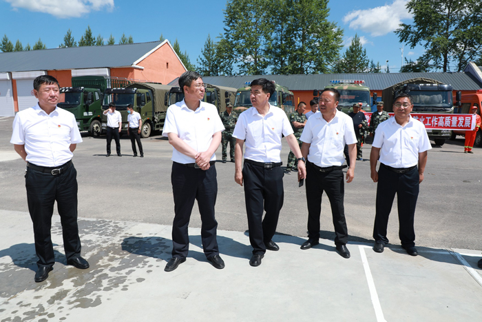 集團森林防火辦黨委副書記、紀(jì)委書記、督查處長、工會主席回軍峰(中)深入到阿木爾林業(yè)局防火辦,點對點指導(dǎo)黨建共建工作(王力 攝)