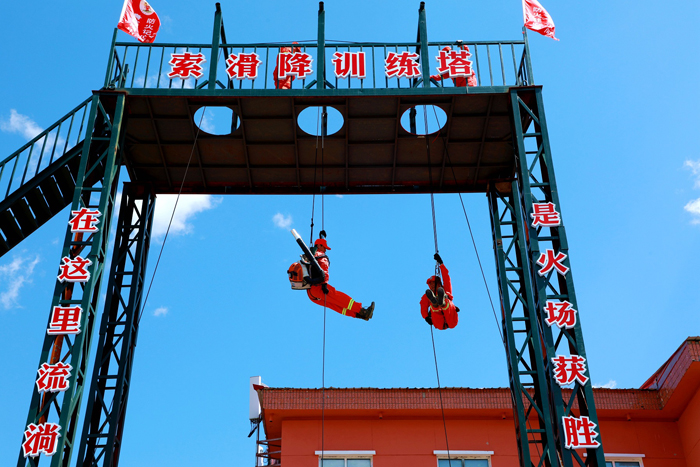 阿木爾林業(yè)局專業(yè)撲火隊員進行索滑降訓(xùn)練(王力 攝)