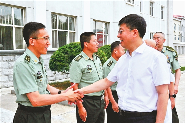7月29日上午,在伊春軍分區(qū),隋洪波親切慰問了官兵代表,并與軍分區(qū)有關(guān)領(lǐng)導(dǎo)干部座談。隋洪波指出,多年來,駐伊部隊和廣大民兵積極參與全市疫情防控、搶險救災(zāi)、維穩(wěn)處突、脫貧攻堅等工作,為守好祖國“北大門”和促進伊春改革發(fā)展穩(wěn)定作出了突出貢獻。希望駐伊部隊官兵深入貫徹習近平強軍思想,牢牢把握黨管武裝正確方向,堅持黨對軍隊的絕對領(lǐng)導(dǎo),確保絕對忠誠、絕對純潔、絕對可靠,永遠做黨和人民的忠誠衛(wèi)士。希望駐伊部隊官兵一如既往地支持伊春經(jīng)濟社會發(fā)展,積極參與伊春建設(shè),為加快伊春高質(zhì)量轉(zhuǎn)型發(fā)展繼續(xù)貢獻力量,在推進伊春綠色崛起中發(fā)揮更大作用。