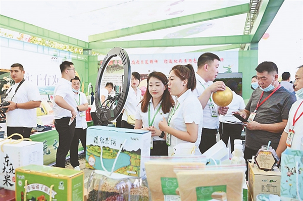 綠色農(nóng)產(chǎn)品展銷會(huì)現(xiàn)場(chǎng)。