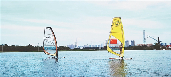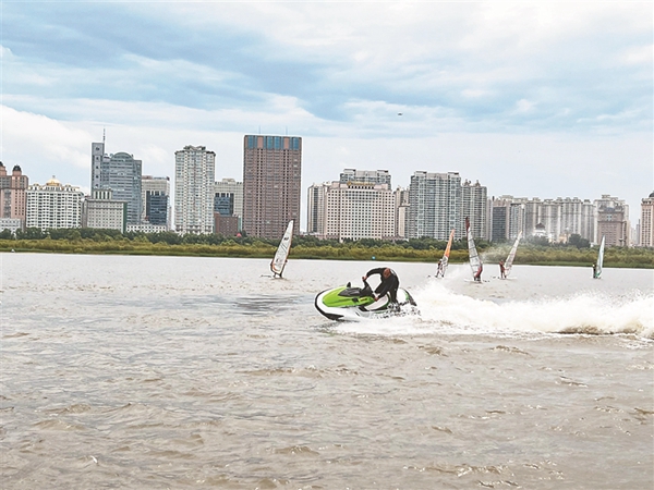 活動(dòng)現(xiàn)場(chǎng),摩托艇、水上飛行器、滑水板、帆板、帆船以及快艇觀光等多個(gè)水上運(yùn)動(dòng)項(xiàng)目輪番亮相。乘著江風(fēng),摩托艇以最大馬力在江中飛馳,水上飛行器在空中進(jìn)行翻轉(zhuǎn)和沖浪……一場(chǎng)“速度與激情”的表演,引得觀眾連連拍手叫絕。