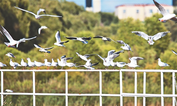 近年來(lái),隨著環(huán)境保護(hù)力度的加大,松花江生態(tài)持續(xù)向好,水豐魚(yú)多,給紅嘴鷗等候鳥(niǎo)提供了豐富的食物。每年,都有超過(guò)萬(wàn)只的紅嘴鷗春秋兩季在松花江這處“驛站”歇腳。 黑龍江日?qǐng)?bào)記者 張澍攝