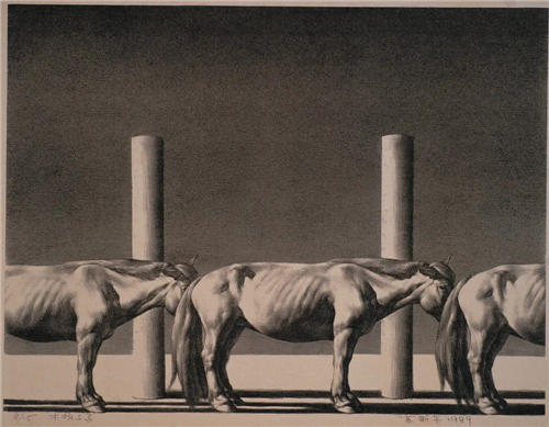 躺著的男人與遠去的白馬 62×50.5cm 石版畫 1989年
