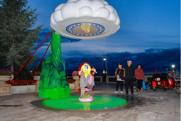 人氣最高的應(yīng)數(shù)“千年云雨”燈組,運(yùn)用了水流循環(huán)系統(tǒng)與燈光相結(jié)合,形成了可互動、可參與、可觀賞的趣味云雨再現(xiàn),引發(fā)人們對千年前恐龍時(shí)代自然天象的無限聯(lián)想,體現(xiàn)了古與今一脈相承、生靈與自然和諧共處。
