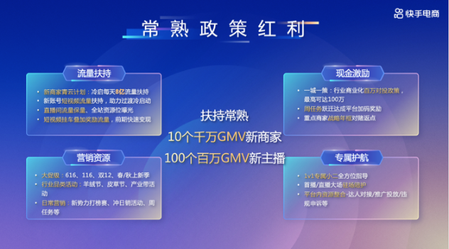 在流量扶持方面,新手常熟商家可享受“青云計劃”每天8億流量扶持,還有短視頻流量扶持、直播間流量保量、全站資源位曝光、短視頻掛車疊加獎勵等;在營銷資源方面,快手電商打造每月高頻的營銷場景,包括大促、節(jié)日、行業(yè)品類活動、寵粉節(jié)等,并為常熟商家提供活動補貼,激活品牌動銷;此外還有最高價值100萬的商業(yè)化對投政策、周任務(wù)躍遷達成平臺加碼獎勵等現(xiàn)金激勵,以及1V1專屬小二全方位指導(dǎo)等專屬護航。