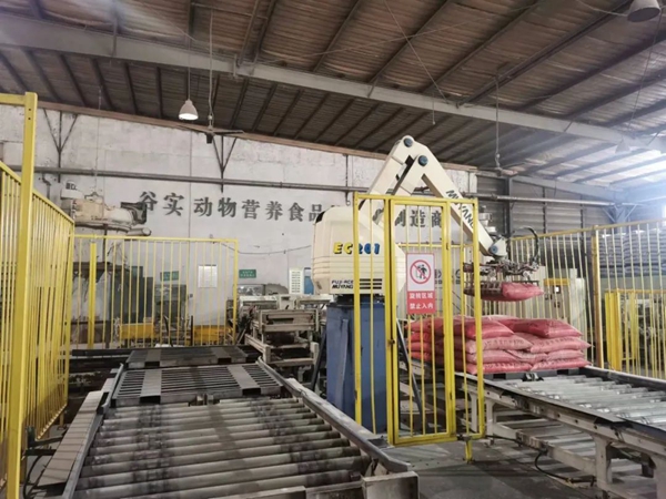 谷實(shí)生物集團(tuán)車間里的碼垛機(jī)器人。