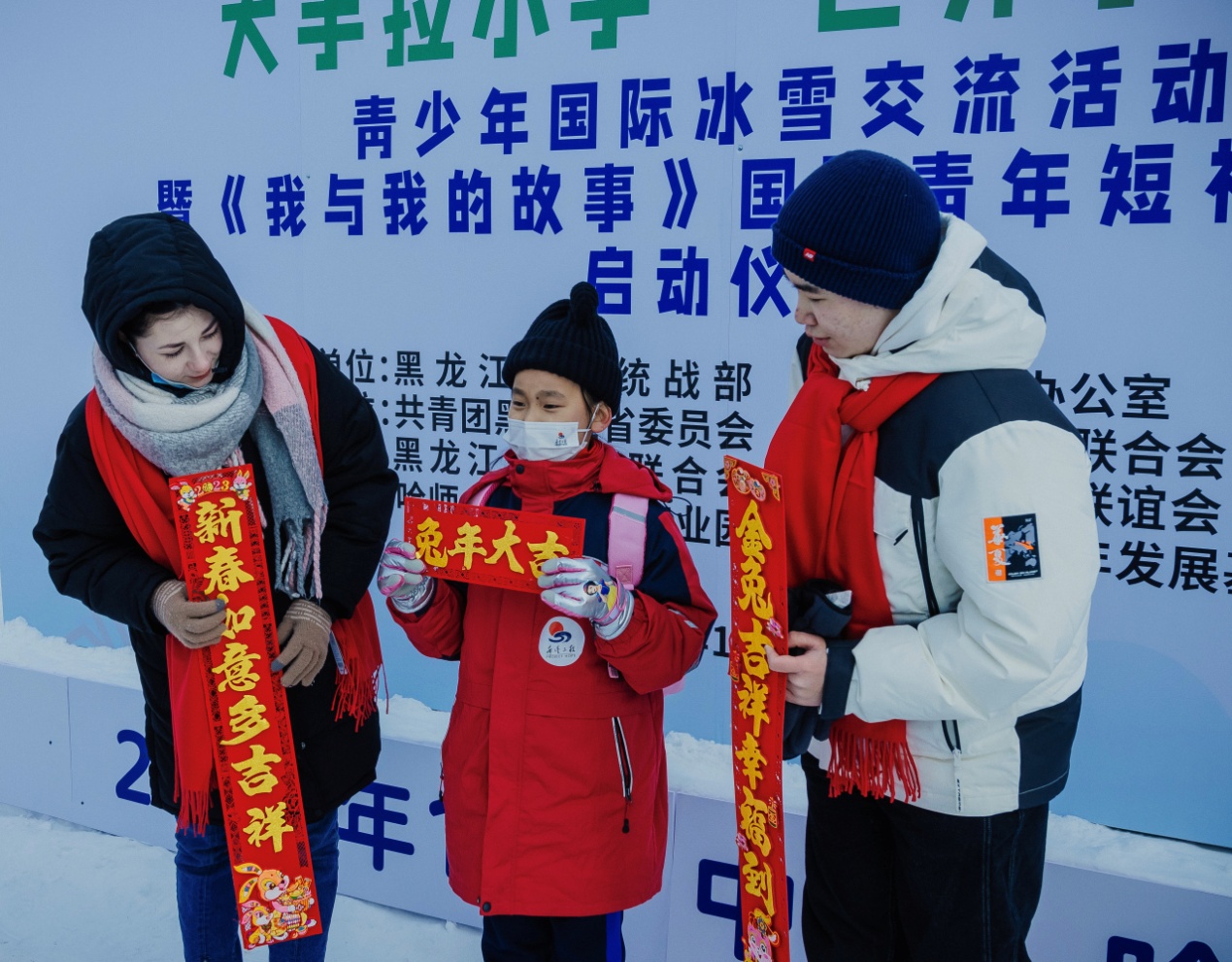 當(dāng)天上午,在雪博會,來自黑龍江大學(xué)的各國留學(xué)生代表與中國青少年結(jié)對互動,互贈新春禮物,表達(dá)對即將迎來的兔年美好祝福。中外青少年小手拉大手,共游太陽島雪博會,鯉魚躍龍門、圓夢啟程、雪冠博覽等雪雕雪景讓大家流連忘返。世界各國青少年一起雕刻“宇航員”雪雕,送上春聯(lián)祝福語,體驗了中國傳統(tǒng)文化和濃濃的年味,表達(dá)了對世界文化共融的美好祝愿。