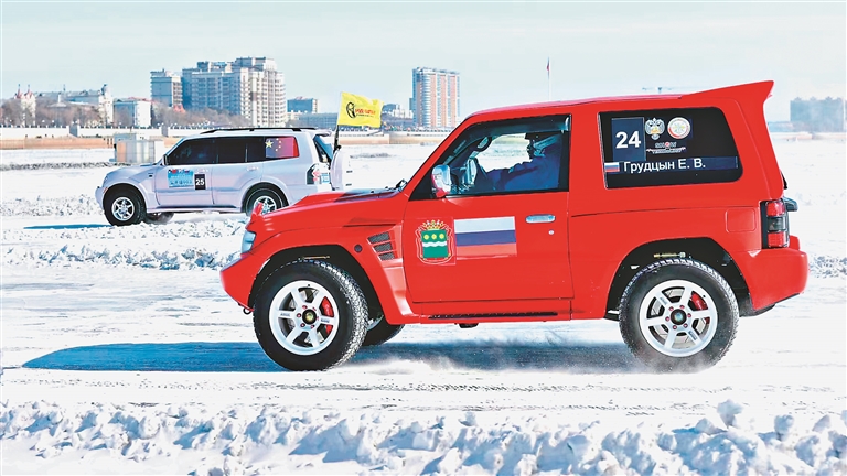 本次比賽地點設(shè)在中俄界江黑龍江江面上。比賽設(shè)置大排量和小排量兩個組別,進行資格賽和決賽的比拼,雙方各派出20輛汽車參賽。比賽采用電子計時和機械計時兩種方式,參賽選手分別在周長1.5公里的A型場地和3.8公里的B型場地上駕車行駛,兩次用時之和為最終比賽成績,用時最短者勝出。現(xiàn)場500多名中俄觀眾共賞這場冰雪汽車挑戰(zhàn)盛宴。