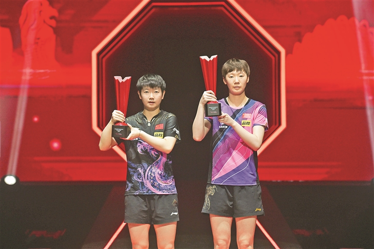 冠軍孫穎莎(左)/王曼昱在頒獎(jiǎng)儀式上。