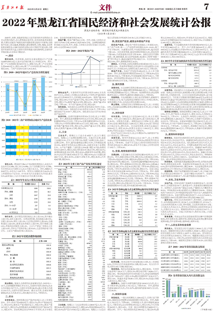 黑龍江省統(tǒng)計(jì)局 國家統(tǒng)計(jì)局黑龍江調(diào)查總隊(duì) (2023年3月22日)