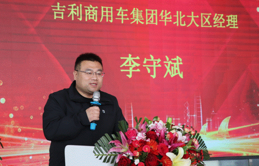 吉利商用集團華北大區(qū)經理李守斌就氫能源汽車產業(yè)作主旨發(fā)言。