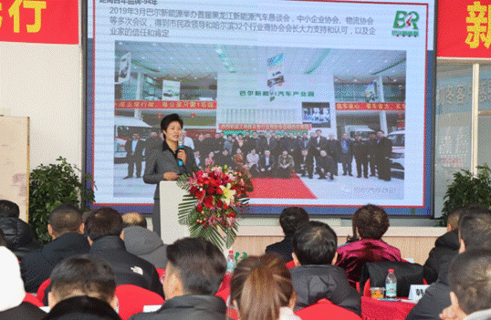 黑龍江巴爾新能源汽車銷售有限公司董事長高臣文、總經理徐娟就物聯網+新能源汽車產業(yè)相關情況以及發(fā)展新能源汽車產業(yè)規(guī)劃進行路演推介,并作民營企業(yè)家理想信念報告。