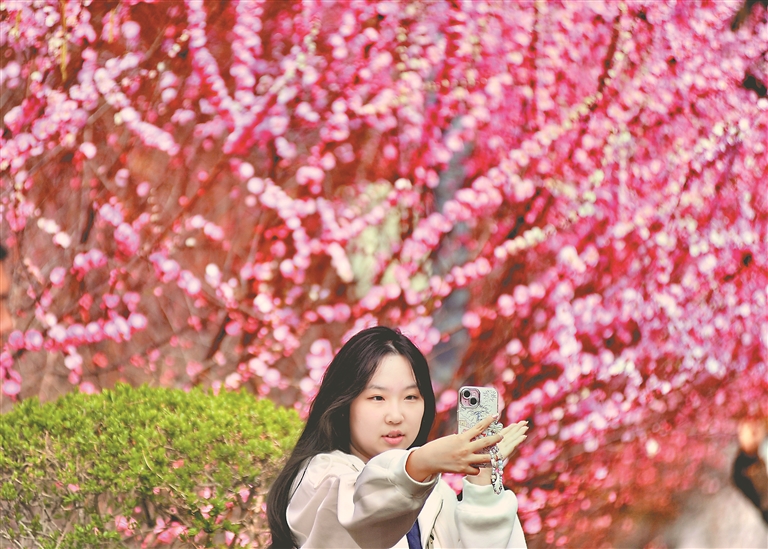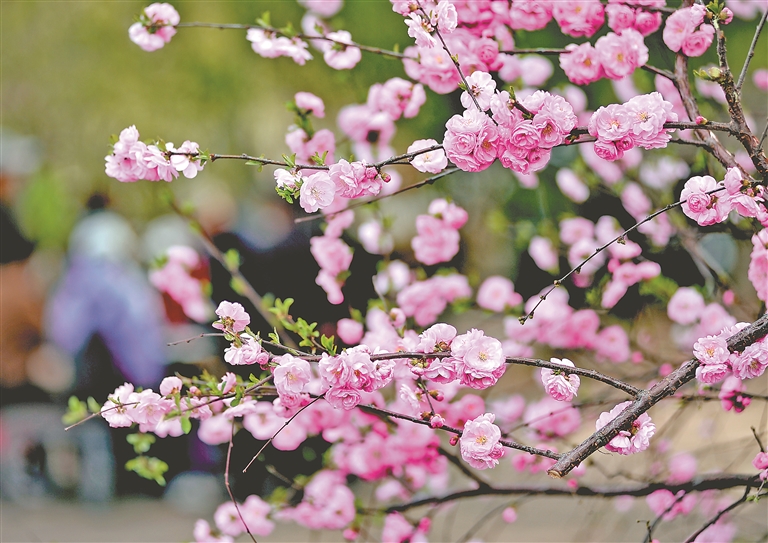 近期,哈爾濱市街頭、廣場、公園里種植的榆葉梅陸續(xù)開花,有粉色的,有紅色的,一團團一簇簇,綻放的花朵吸引人們駐足觀賞、拍照。