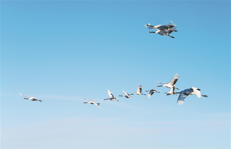 候鳥成隊飛翔在林區(qū)上空。圖片由受訪單位提供