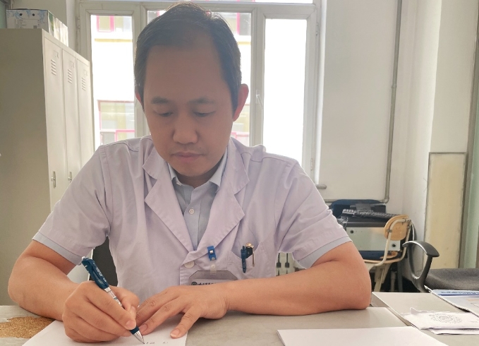 李磊在門診為患者看診
