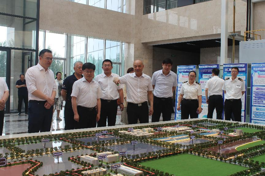 尹承云向考察組一行講解沙盤,介紹綜保區(qū)建設(shè)運(yùn)營(yíng)情況。