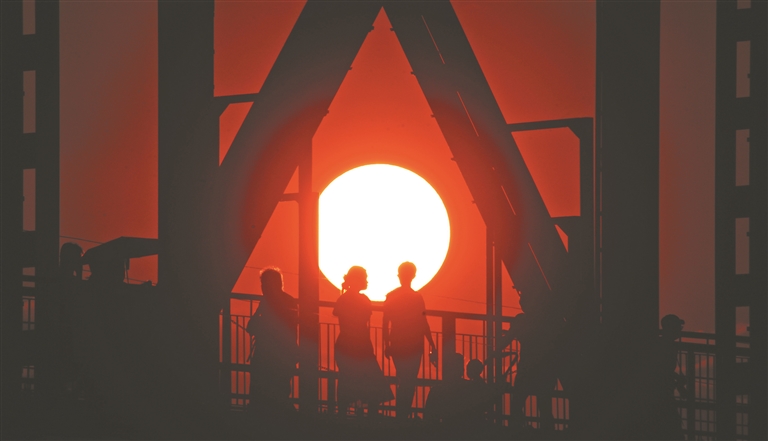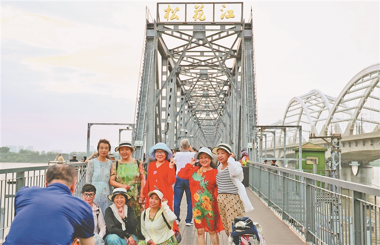 雖然入伏了,但哈爾濱市百年老橋濱洲鐵路橋上江風習習、清爽宜人。無論白天還是晚上,都有市民和來自天南海北的游客來此打卡拍照、觀賞美景、沐浴清涼。