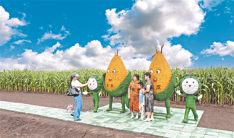 走進(jìn)北大荒集團(tuán)江川農(nóng)場(chǎng)的稻作文化展示區(qū),一幅五彩斑斕的畫卷便在眼前徐徐展開(kāi)。那一片片稻田中,“北大荒第一鐮”訴說(shuō)著曾經(jīng)的輝煌與勤勞;可愛(ài)的米娃IP形象,或“垂釣”,或與蛙鳴“相伴”,或“見(jiàn)證”鯉魚(yú)騰飛,還有珍稀鳥(niǎo)類在其間嬉戲,仿佛構(gòu)成了一個(gè)充滿童話色彩的世界。“鑫稻田”則展現(xiàn)著企業(yè)合作的強(qiáng)大力量,寓意著共同發(fā)展、共創(chuàng)輝煌。