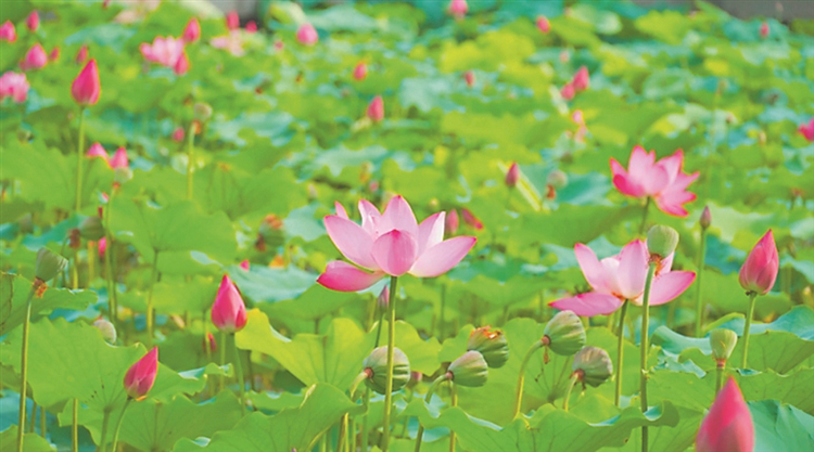 在北大荒集團(tuán)八五九農(nóng)場(chǎng)有限公司灌渠附近,眾人發(fā)現(xiàn)了一片美若仙境的荷花泡,粉色的花朵連成一片,遠(yuǎn)遠(yuǎn)望去燦若朝霞,香味彌漫周圍。荷花池中,綠葉如蓋,朵朵荷花從中脫穎而出,花瓣層層疊疊,錯(cuò)落有致,宛如精心雕琢的藝術(shù)品,每一朵都蘊(yùn)含著大自然的鬼斧神工。