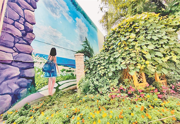 哈爾濱市道外區(qū)東直路上,路邊的花卉景觀與墻體彩繪互相映襯,成為街頭一道美麗風(fēng)景,引得人們紛紛駐足觀看。畫里的溪流、小徑、樹木、花草、動(dòng)物與畫外的綠地巧妙結(jié)合起來(lái),融為一個(gè)整體,創(chuàng)意新穎,視覺效果良好,讓人眼前一亮。