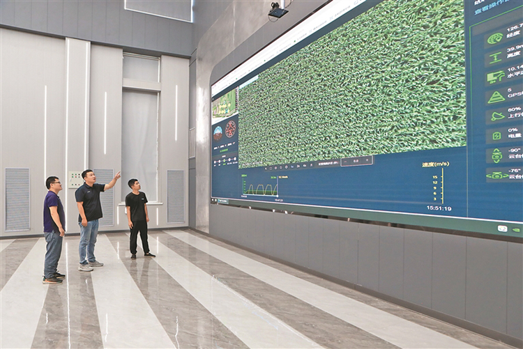 技術(shù)人員在數(shù)字農(nóng)業(yè)指揮大廳分析作物長(zhǎng)勢(shì)。任忠良攝