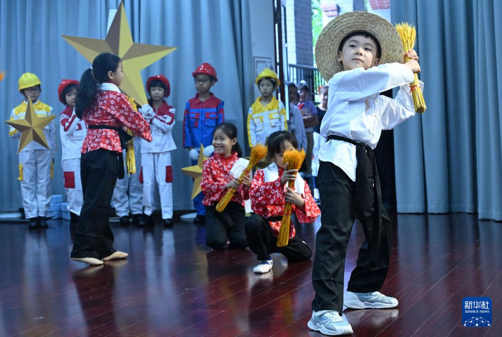 9月30日,湖北省黃石市沈家營小學(xué)的小朋友們在迎國慶活動(dòng)上表演節(jié)目。新華社記者 伍志尊 攝