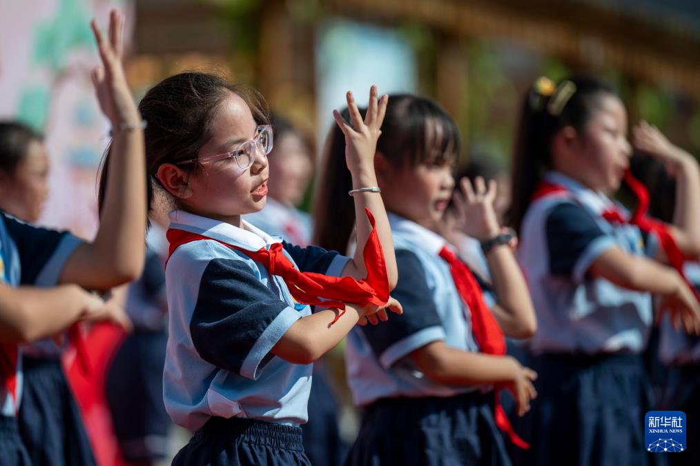 9月30日,北京市西城區(qū)京華實(shí)驗(yàn)學(xué)校學(xué)生在慶祝中華人民共和國成立75周年暨“我愛我的美麗祖國”主題教育活動(dòng)上表演節(jié)目。新華社記者 金良快 攝