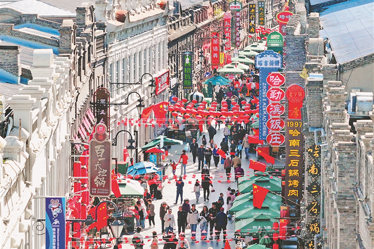 哈爾濱道外中華巴洛克歷史文化街區(qū)人潮涌動。本報記者 張澍攝