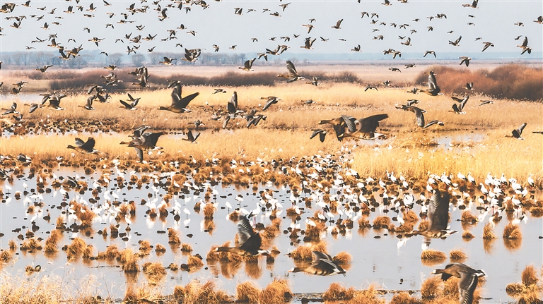 本報(bào)訊(馬淑芬 記者潘宏宇)6日一早,剛下過第一場雪的寶清縣,數(shù)千只東方白鸛在此“集結(jié)”,飛翔在湛藍(lán)的天空和白雪覆蓋的大地之上,勾勒出一幅美麗的圖景,為冬日的寶清增添了一抹別樣的生機(jī)與活力。