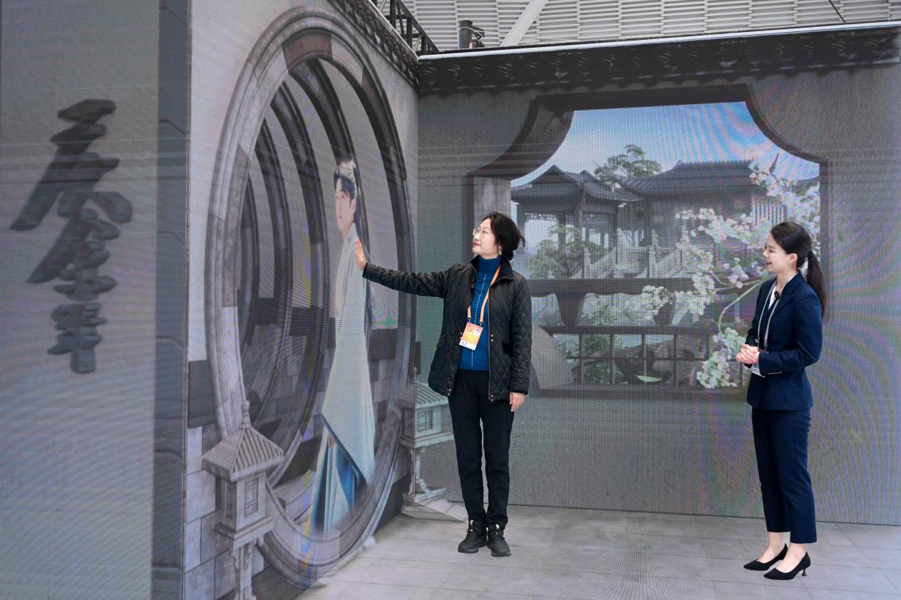 文化板塊,是騰訊本次展會的一大亮點。在“騰訊文化IP盒子”中,集合騰訊文學(xué)、影視、音樂、游戲、電競、動漫六大板塊的文化產(chǎn)業(yè)集群躍然眼前。在以裸眼3D模式呈現(xiàn)的三面屏中,觀眾可以一覽騰訊文化產(chǎn)業(yè)的全球布局,走入《慶余年》《繁花》等IP經(jīng)典場景中進行合影,并通過現(xiàn)場設(shè)置的AI智能體,與劇中的虛擬角色實時語音互動。