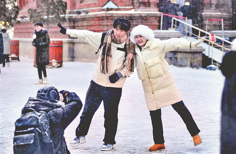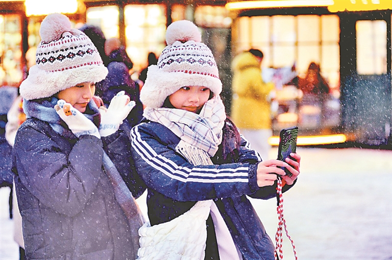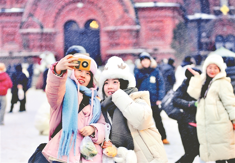 在各處景點(diǎn),降雪讓游客們游玩興致更濃,大家紛紛在雪中拍照,記錄下精彩瞬間,感受降雪帶來的快樂。