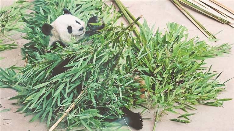 尤其是“佑佑”,曬著午后暖陽(yáng),坐在室外的雪地里,大口“狂炫”竹葉,這一口吃夠了,就尋覓著從雪里刨出來(lái)一根竹筍,秒變“剝筍小哥”?!坝佑印边€時(shí)不時(shí)停下來(lái),盯著人群定格幾秒,仿佛是專門為游客拍照擺好姿勢(shì),令不少南方小伙伴感嘆“開(kāi)了眼界”。