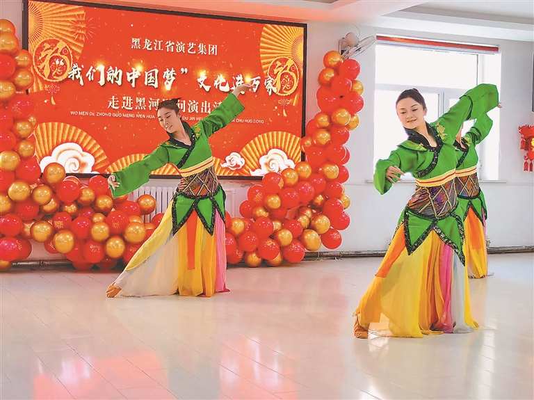 本報21日訊(王靜鉬 記者 邵晶巖)21日,省演藝集團(tuán)演職人員深入黑河愛輝區(qū)四個社區(qū)開展“我們的中國夢”文化進(jìn)萬家——走進(jìn)黑河活動,以群眾喜聞樂見的形式,為群眾送來精彩的文藝演出和新春祝福。