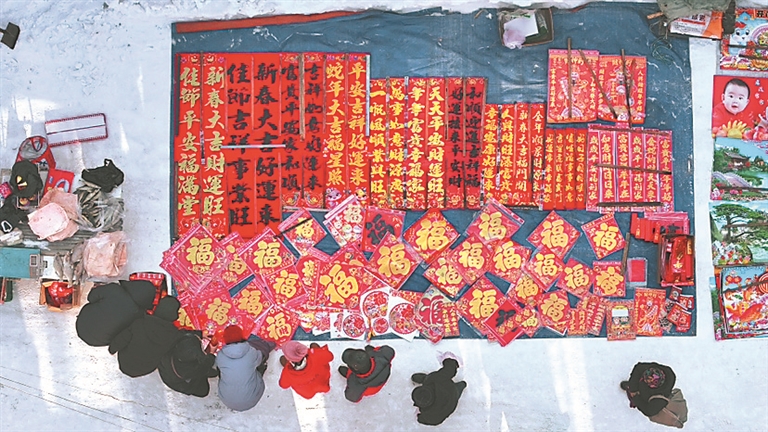 小年來(lái)臨,海林市橫道河子大集熱熱鬧鬧。小鎮(zhèn)居民在各個(gè)攤床前采購(gòu)各式各樣的年貨,挑春聯(lián),選福字,買干調(diào)凍貨熟食……小街上人流熙熙攘攘,年味十足。