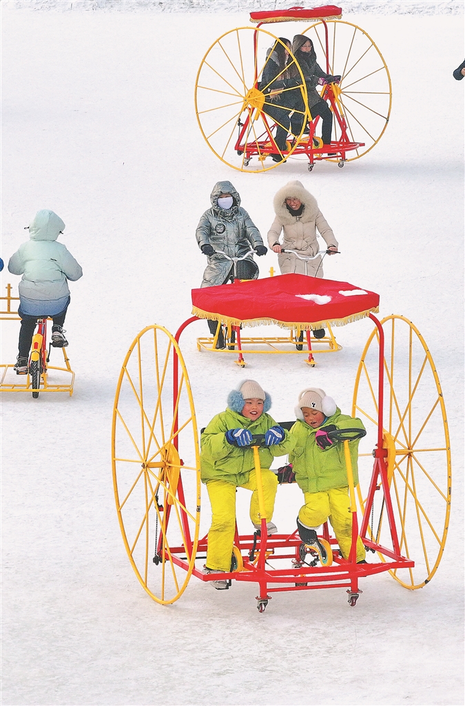 1月29日,大年初一,哈爾濱太陽島雪博會(huì)園區(qū),游人如織。孩子們在家長的帶領(lǐng)下,坐雪圈、騎冰上自行車,玩冰戲雪,歡樂融融。省博物館展廳內(nèi),懸掛了紅燈籠、紅條幅,許多市民、游客在參觀學(xué)習(xí),打卡拍照,體驗(yàn)傳統(tǒng)民俗。