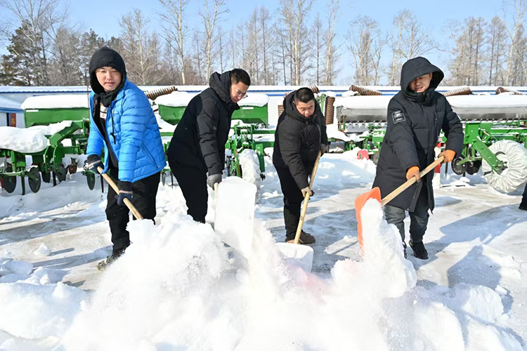 “眼下天氣逐漸回暖,為了避免氣溫上升造成積雪融化而形成冰層,影響后續(xù)工作,我們采取鏟車清雪、人工清邊的措施,確保將農(nóng)具場(chǎng)積雪徹底清理干凈,為農(nóng)機(jī)具檢修提供良好環(huán)境?!惫芾韰^(qū)工作人員說(shuō)。