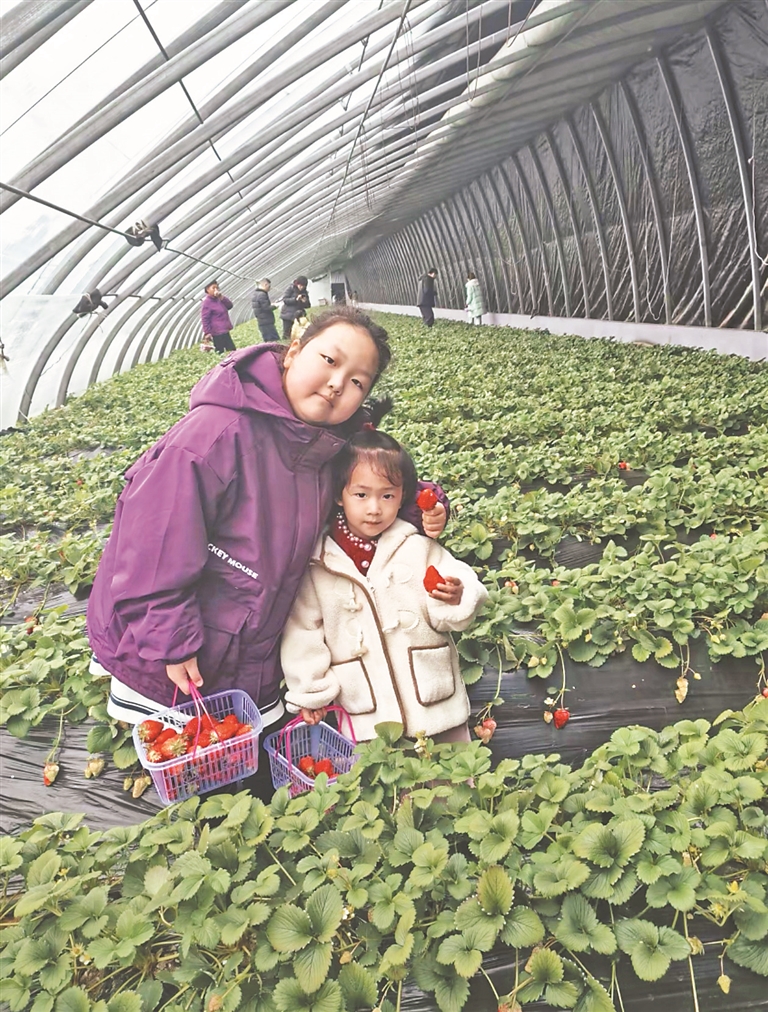 據(jù)園區(qū)負(fù)責(zé)人張立元介紹,2月份以來,日均接待游客超過100人次,周末時人數(shù)成倍增長。大棚內(nèi),草莓占地5畝,通過自主育苗、全程采用無公害種植技術(shù)等方式,產(chǎn)量和質(zhì)量實(shí)現(xiàn)雙提升,年產(chǎn)量約6000斤。