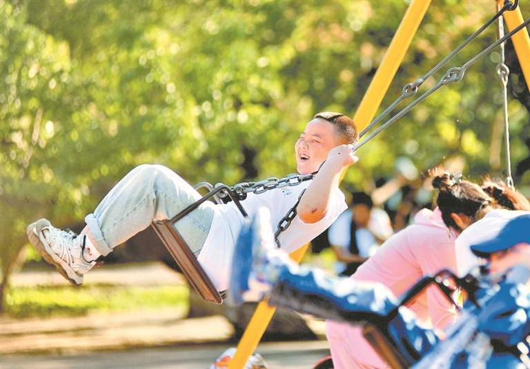 1日,哈爾濱市兒童公園內(nèi),孩子們坐小火車、滑滑梯、騎自行車、放小飛機(jī)、蕩秋千、玩蹺蹺板,快樂地度過自己的節(jié)日。