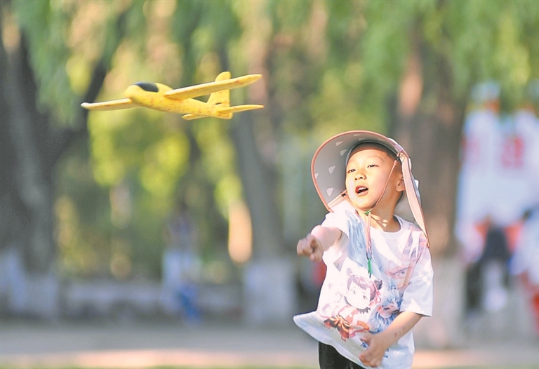 在省森林植物園內(nèi),孩子們在草坪上放風(fēng)箏、吹泡泡、追逐嬉戲,盡情享受假日好時光。