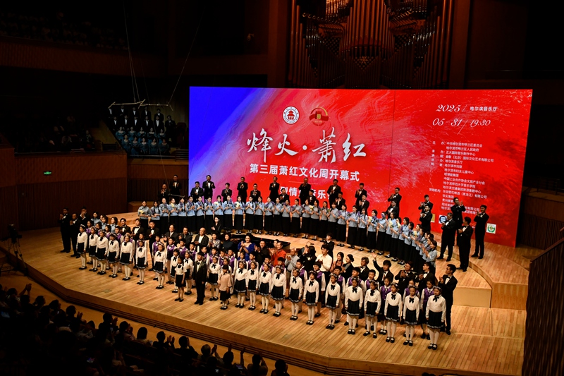 “蕭紅已成為黑土地的精神路標(biāo)!蕭紅作品中對(duì)人民的悲憫、對(duì)命運(yùn)的抗?fàn)?、?duì)家國(guó)的摯愛(ài),恰是東北文化與中華民族精神的堅(jiān)韌內(nèi)核!”由著名主持人敬一丹擔(dān)任誦講人,開(kāi)幕式演出以“情景音樂(lè)會(huì)”為創(chuàng)新形式,分《序曲》《松花江上》《抗戰(zhàn)的烽火》《文脈永續(xù)》四大篇章展開(kāi)。音樂(lè)會(huì)在《呼蘭河邊的小姑娘》合唱中拉開(kāi)帷幕,童聲與交響樂(lè)交織再現(xiàn)蕭紅筆下菜園里的純真目光;情景朗誦《呼蘭河傳》以抒情語(yǔ)調(diào)勾勒東北風(fēng)情長(zhǎng)卷,喚醒觀眾對(duì)蕭紅故鄉(xiāng)的想象。