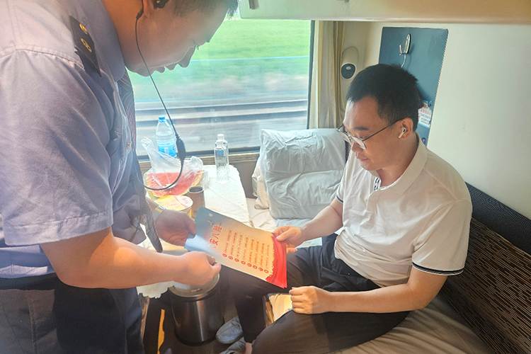 為了讓旅客也參與到安全行動(dòng)中來(lái),乘務(wù)員們化身安全宣傳員,穿梭在各個(gè)車(chē)廂為旅客發(fā)放安全知識(shí)宣傳單,不斷強(qiáng)化旅客的安全意識(shí)。